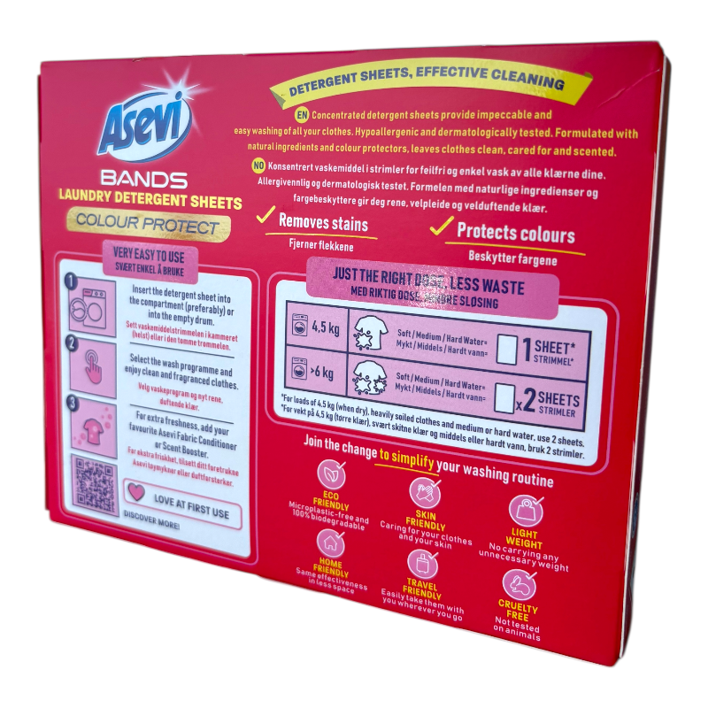 Asevi Bands Laundry Detergent Sheets 30 Wash - Colour Protect - 1 Case - 10 Units